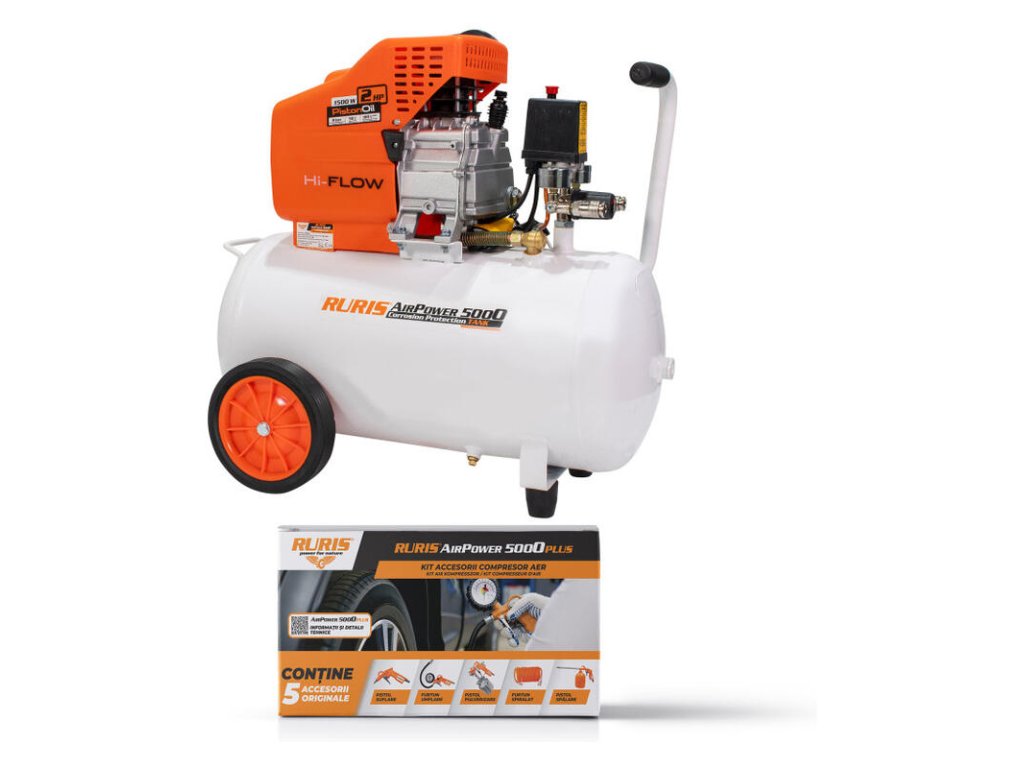 Kompresor RURIS Air Power 5000 je štandardne vybavený ventilom, ktorý nastavuje tlak v závislosti od použitia príslušenstva namontovaného na hadici kompresora.