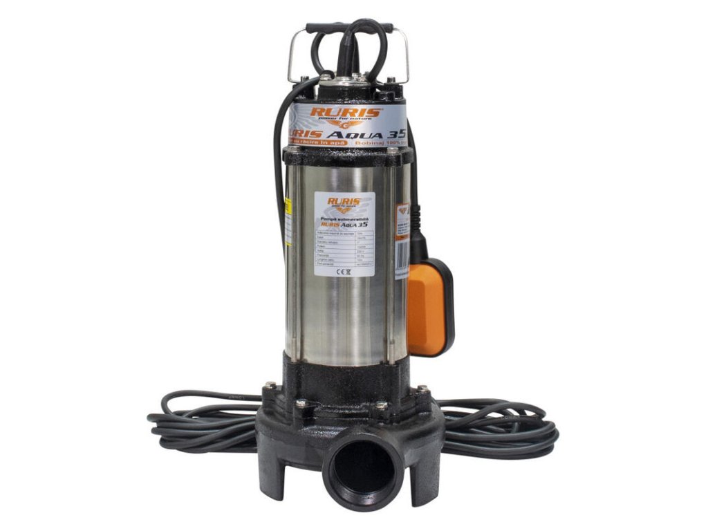 Ponorné čerpadlo RURIS Aqua 35 má telo z nehrdzavejúcej ocele odolné voči pôsobeniu rôznych častíc zo špinavej vody, je vybavené drvičom a dokáže bez problémov odvádzať splašky s obsahom pevných častíc až do priemeru 3,5 mm.