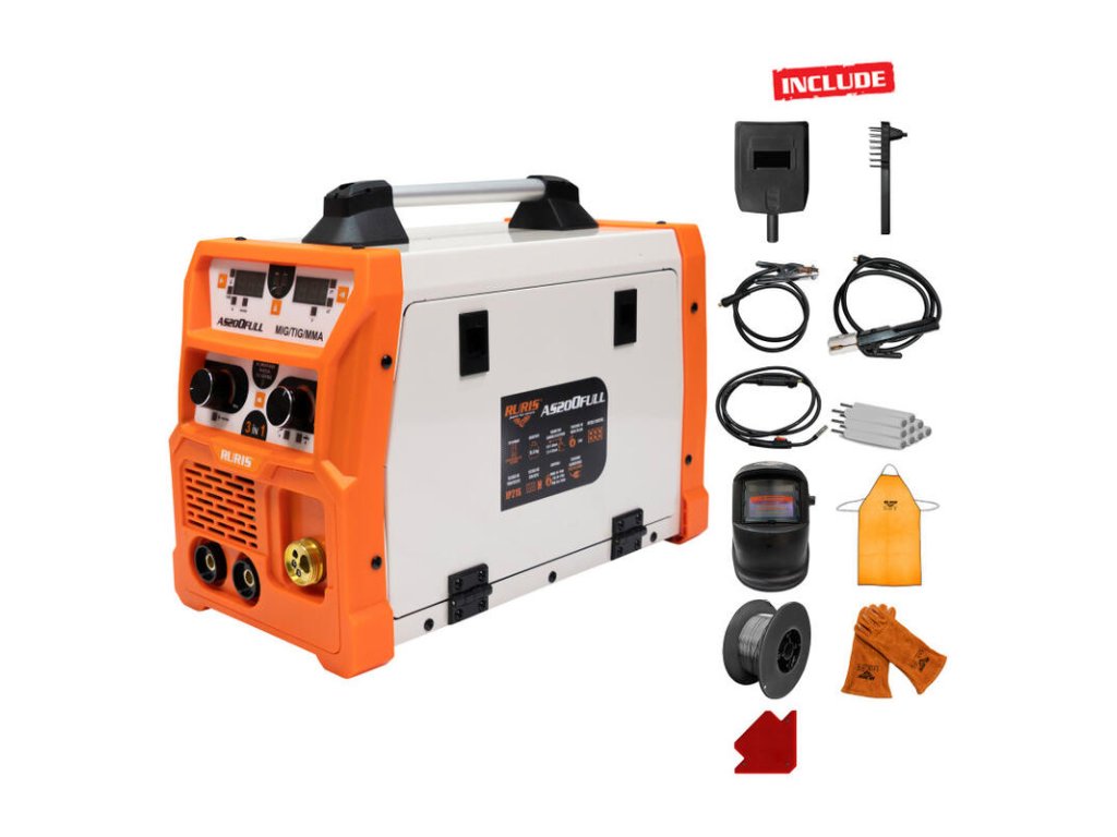 Invertorová zváračka RURIS AS200FULL s prúdom 200Ah je kompaktné a prenosné zváracie zariadenie, ktoré dokáže vykonávať niekoľko druhov zvárania: MIG / MAG, LIFT TIG, MMA.
