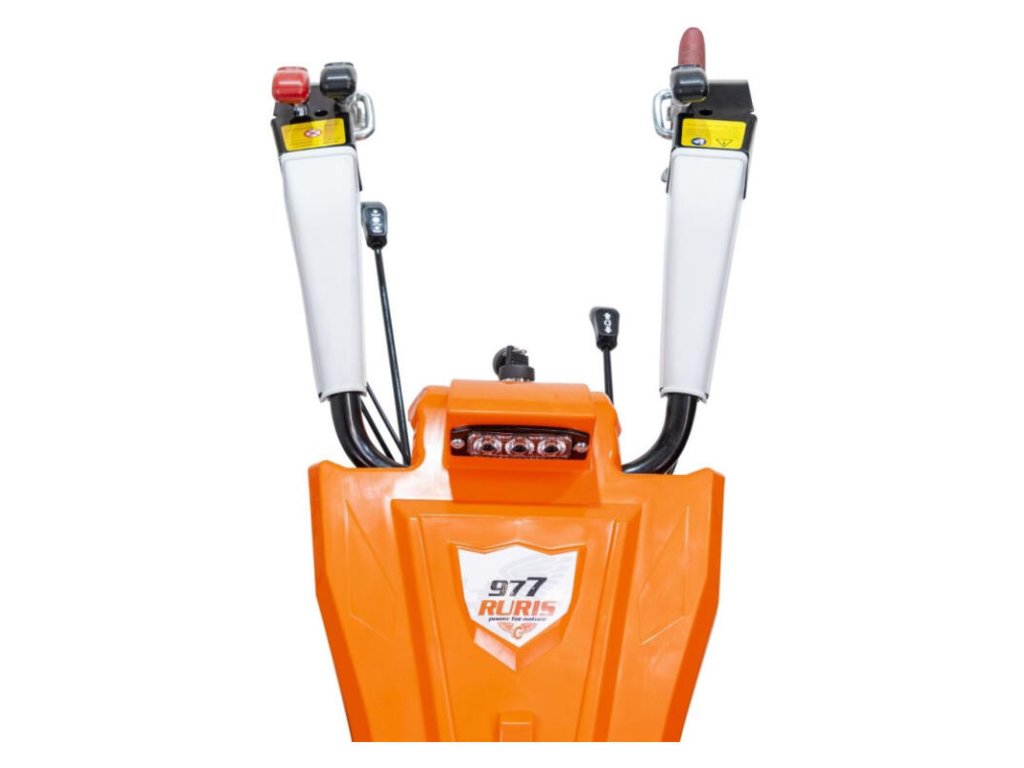 S čistou hmotnosťou 98 kg s nadstavcom je kultivátor Ruris 977C robustný a stabilný, vďaka čomu je vhodný na použitie v rôznych terénnych podmienkach a širokej škále poľnohospodárskych a záhradníckych aplikácií.