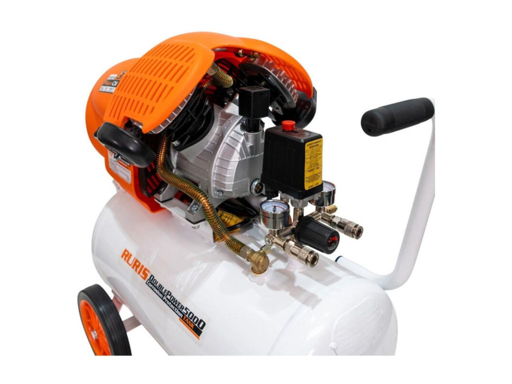 Maximálny tlak 8 barov umožňuje kompresoru RURIS Double Power 5000 efektívne napájať rôzne pneumatické nástroje a zariadenia.