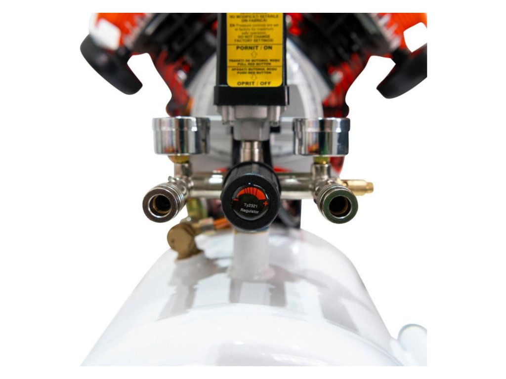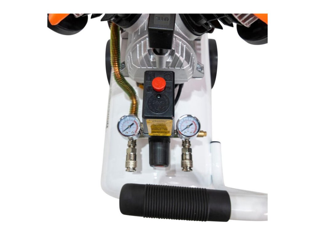 Súčasťou sú aj 2 kompresorové valce, ktoré sú navrhnuté tak, aby stláčali vzduch rýchlejšie a rovnomernejšie, čím sa zabezpečí konštantný prietok a stabilný tlak. To skracuje čakaciu dobu na doplnenie nádrže a umožňuje nepretržité používanie pneumatického náradia aj v náročných podmienkach.