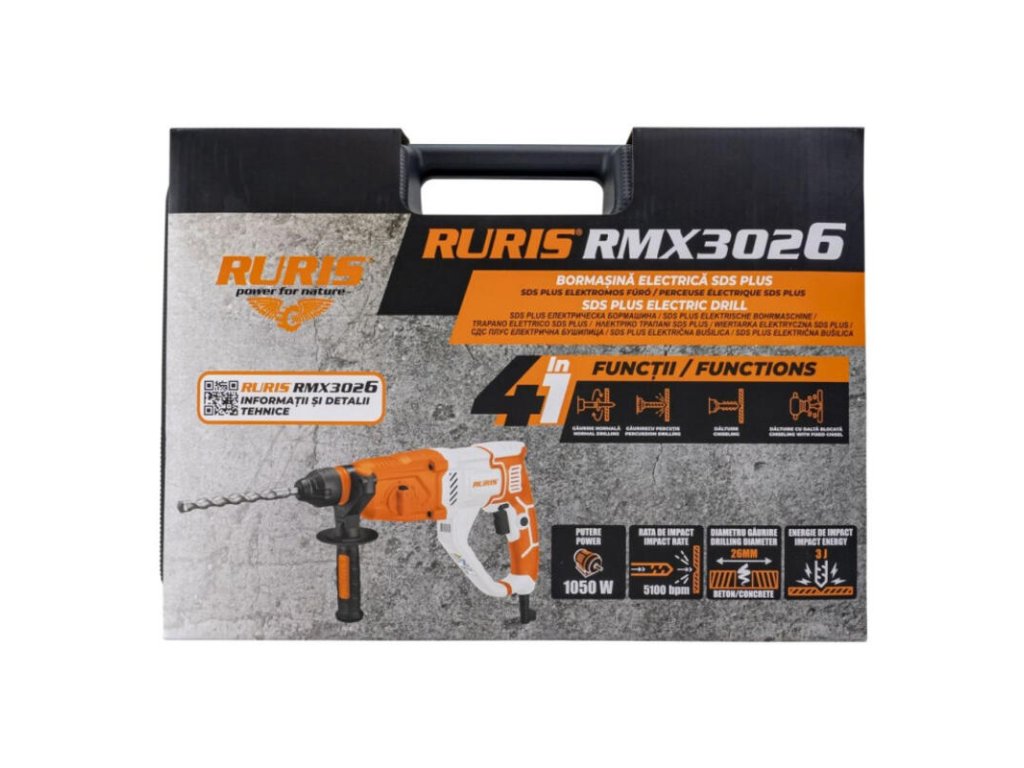 Ruris RX3026 SDS Plus Power Drill je efektívne a vysokovýkonné elektrické náradie určené na rôzne aplikácie vŕtania a sekania do materiálov ako je oceľ, drevo a betón.