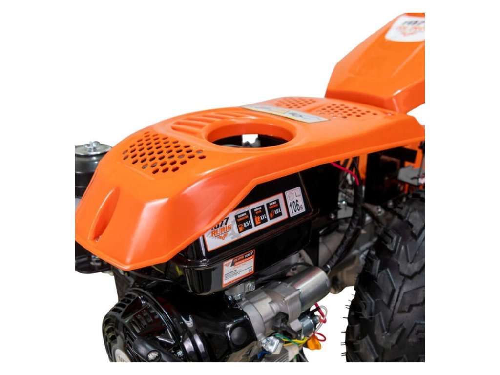 Motorový kultivátor RURIS 1077S je vybavený 3 rýchlosťami vpred a 2 rýchlosťami vzad, čo ponúka zvýšenú kontrolu a prispôsobivosť v závislosti od typu terénu a pracovného zaťaženia. Je poháňaný benzínom a má nádrž s objemom 6,5 litra, čo zaisťuje veľkorysú autonómiu pre dlhú prácu.