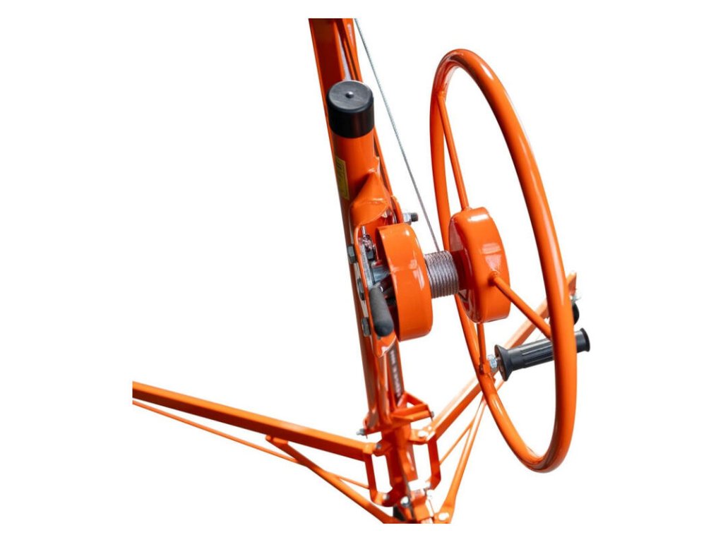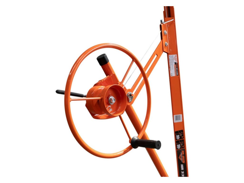 V prípade modelu RURIS HR 3350T je teda minimálna výška zdvihu 1,40 m a maximálna 3,35 m, pričom maximálne rozmery dosky sú 1,22 x 4,88 m. Stroj sa ovláda pomocou kľuky.