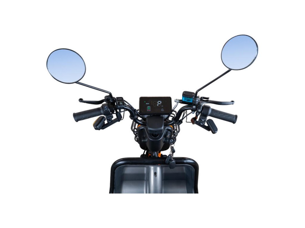 Trojkolka je vybavená extra veľkým LCD displejom, čo je veľká výhoda z hľadiska používateľského komfortu. Displej umožňuje rýchle a prehľadné čítanie všetkých potrebných údajov – rýchlosti, úrovne batérie, najazdených kilometrov a ďalších funkcií – aj za jasného denného svetla, čím prispieva k bezpečnejšiemu a intuitívnejšiemu používaniu.