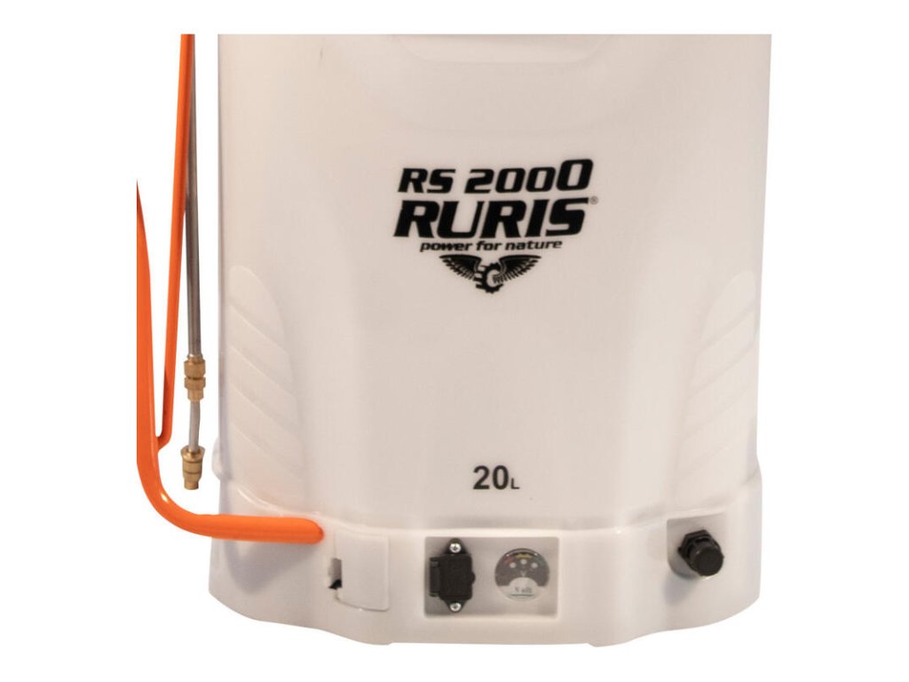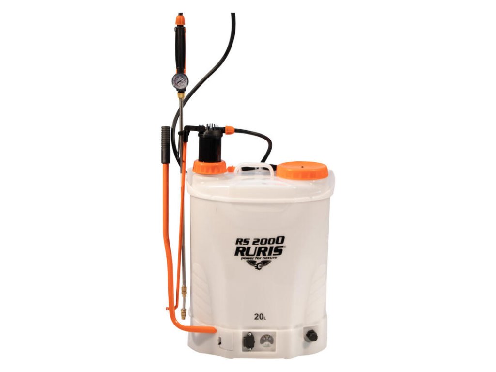 RURIS RS 2000 má robustné a odolné čerpadlo, teleskopickú násadu, veľký plniaci otvor, nádrž s objemom 20 litrov, vyrobenú z odolného materiálu a 12V batériu, ktorá umožňuje používanie postrekovača po dobu 4 hodín.