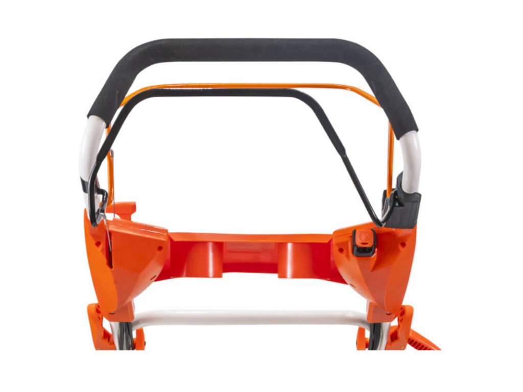 Ergonomický skladací systém rukoväte a zberného vrecka uľahčuje skladovanie alebo prepravu kosačky RURIS RX441S.