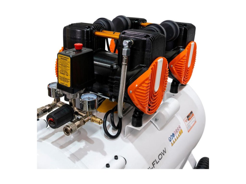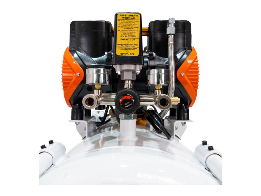 Súčasťou sú aj 2 kompresorové valce, ktoré sú navrhnuté tak, aby stláčali vzduch rýchlejšie a rovnomernejšie, čím sa zabezpečí konštantný prietok a stabilný tlak. To skracuje čakaciu dobu na doplnenie nádrže a umožňuje nepretržité používanie pneumatického náradia aj v náročných podmienkach.