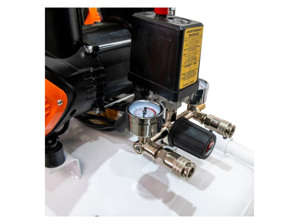 Bezolejový kompresor RURIS Silent Power 10000 je vybavený ochranou proti prehriatiu a ochranou proti preťaženiu, čo sú dve základné funkcie pre bezpečnosť pri používaní. Tieto systémy zabraňujú poškodeniu motora v prípade intenzívneho používania alebo nepredvídaných podmienok, čím zabezpečujú dlhšiu životnosť a vysokú úroveň prevádzkovej spoľahlivosti.