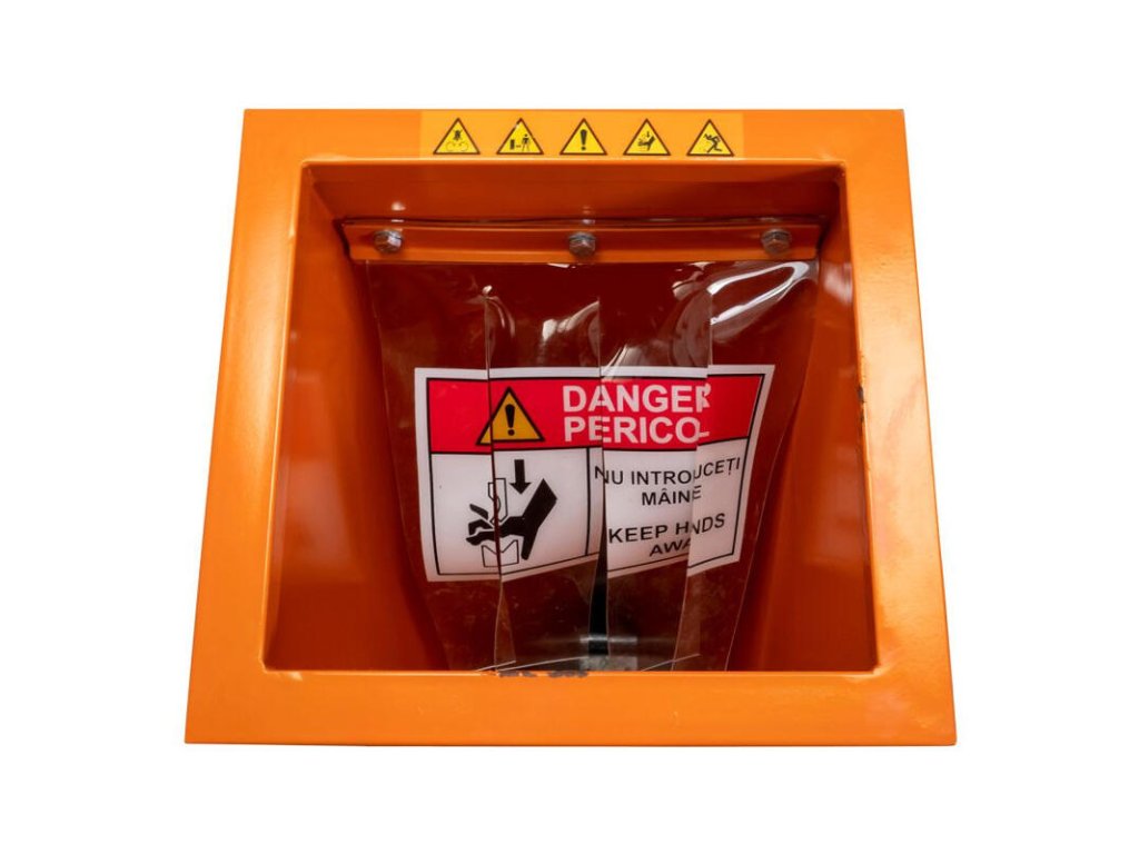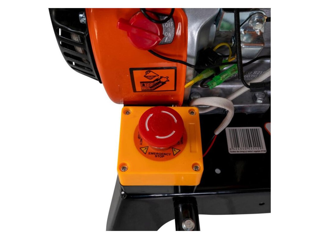 - Drvič ST300 je vybavený núdzovým vypínačom namontovaným v prístupnej polohe, ktorý možno ľahko ovládať, ak je potrebné štiepkovač okamžite zastaviť, čím je zaistená bezpečnosť užívateľa.