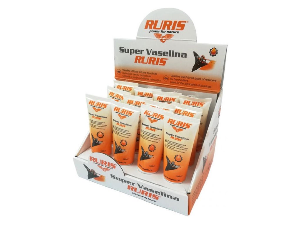 RURIS Super vazelínu je možné pomocou mazacieho zariadenia s predĺžením použiť na všetky typy reduktorov, prevodoviek, ozubených kolies. Vďaka svojim vysokovýkonným mazacím vlastnostiam sa RURIS Super vazelína používa vo všetkých kategóriách ložísk, ako aj pri mechanickom lisovaní tesnení.