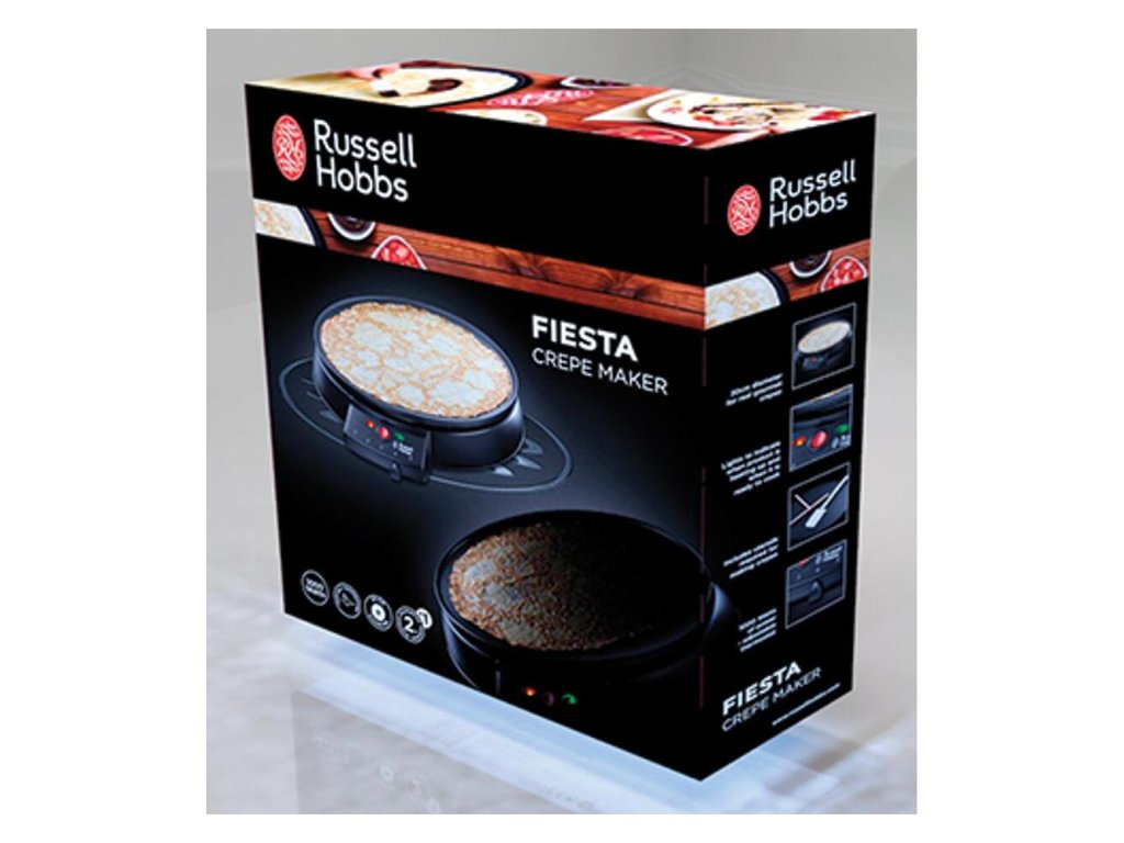 Palacinkovač Russell Hobbs si jednoducho tlačidlom zapnete, počkáte, až sa plocha zahreje na potrebnú teplotu a nalejete cesto na nepriľnavú plochu so zvýšeným okrajom. Po rovnomernom opečení spodnej strany palacinku otočíte, necháte dorobiť druhú stranu a je hotovo. Palacinkovač disponuje nastaviteľným termostatom pre nastevenie optimálnej teploty. Jeho príkon dosahuje 1000W.