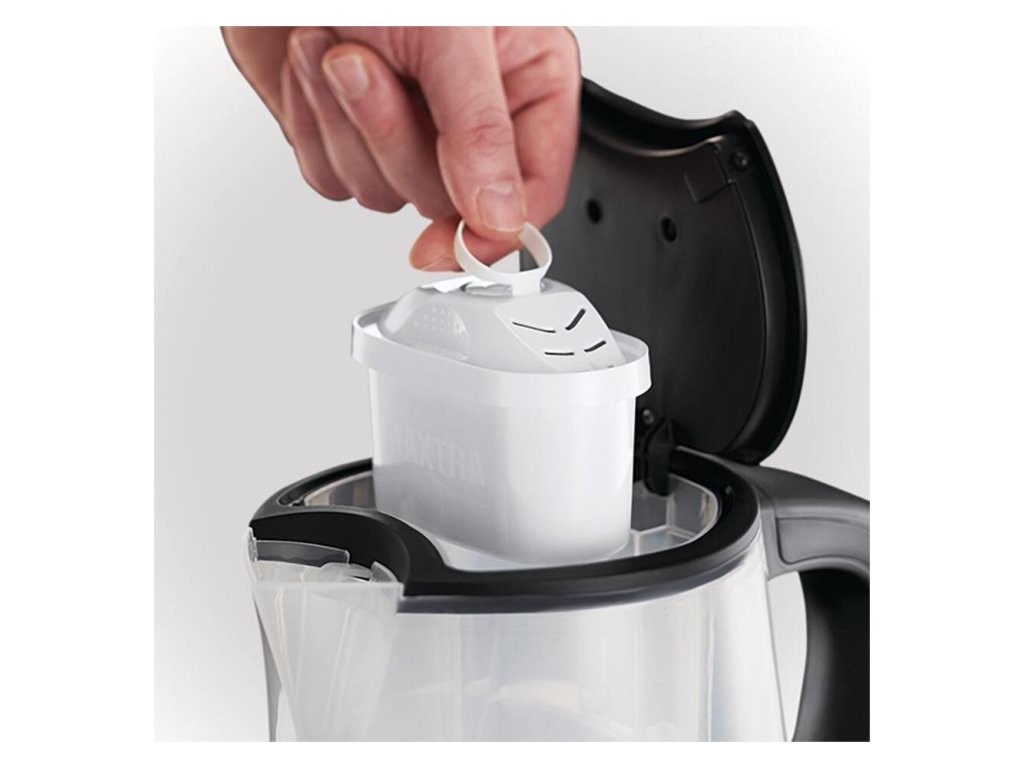 Varná kanvica, 1 liter objem pre varenie / objem zásobníka 0.5 litra, vrátane filtra BRITA MAXTRA, 360 ° základňa, modré osvetlenie pri varu, skryté výhrevné teliesko, odnímateľný a umývateľný filter, kontrolka potreby výmeny náplne Brita, priestor pre skladovanie kábla, 2200 WDodatočné parametre
