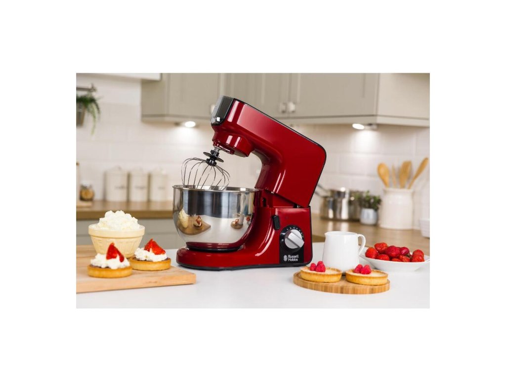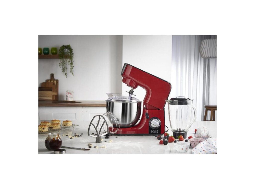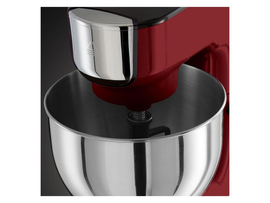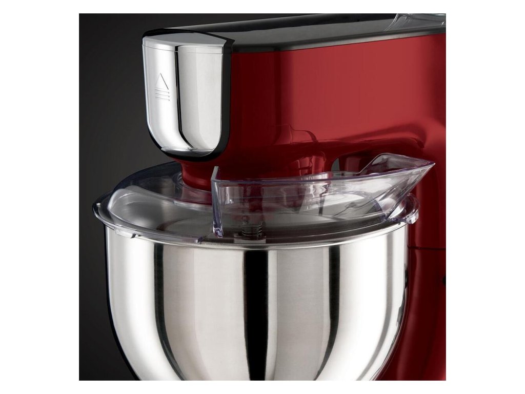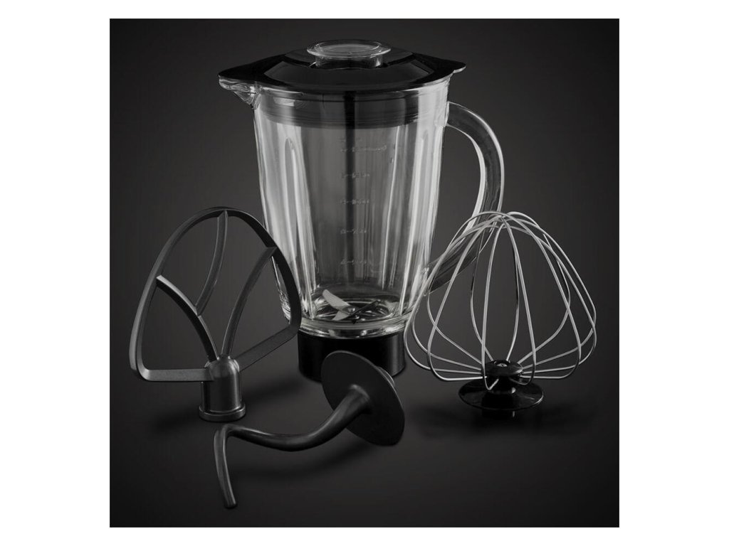 Kuchynský robot s 1000W príkonom je vybavený planetárnym systémom mixovania a nastaviteľnou možnosťou rýchlosti. Robot disponuje sklenenou nádobou na mixovanie, 5 litrovou nerezovou misou a 3 nástavcami. Nechýba miesič cesta, šľahač, metla a transparentný plastový kryt s okienkom pre možnosť pridania ingrediencií počas mixovania.