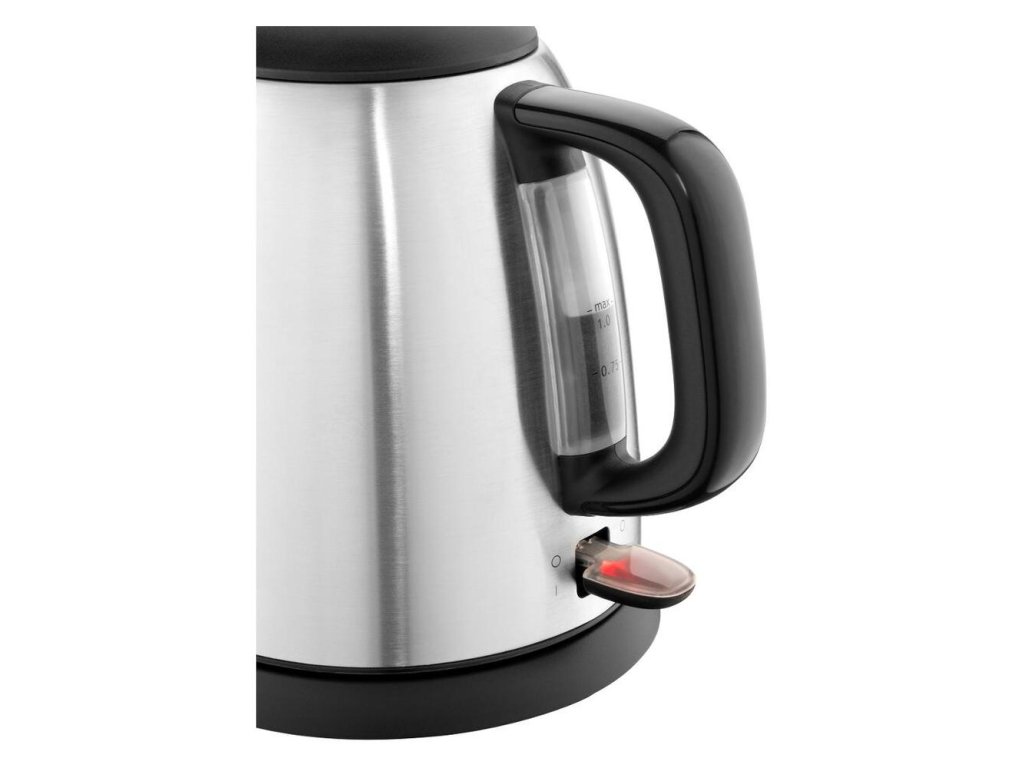 Mini kanvica s objemom 1 l z brúsenej nerez ocele, podsvietený vypínač, uvarí vodu na 1 šálku za 50 sekúnd, odnímateľný umývateľný filter, ukazovateľ množstva vody, odklápacie veko z nerez ocele, 360 ° kruhová základňa, 2.4 kWDodatočné parametre
