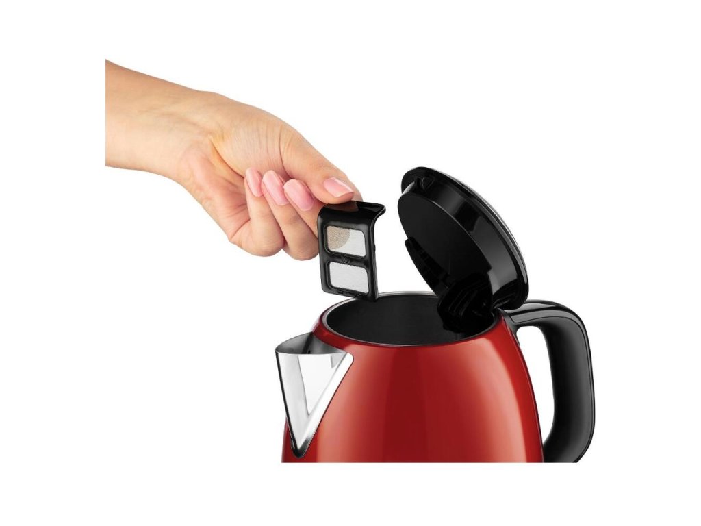Mini kanvica s objemom 1 l z nerez ocele, podsvietený vypínač, uvarí vodu na 1 šálku za 50 sekúnd, odnímateľný umývateľný filter, ukazovateľ množstva vody, odklápacie veko z nerez ocele, 360 ° kruhová základňa, 2.4 kWDodatočné parametre
