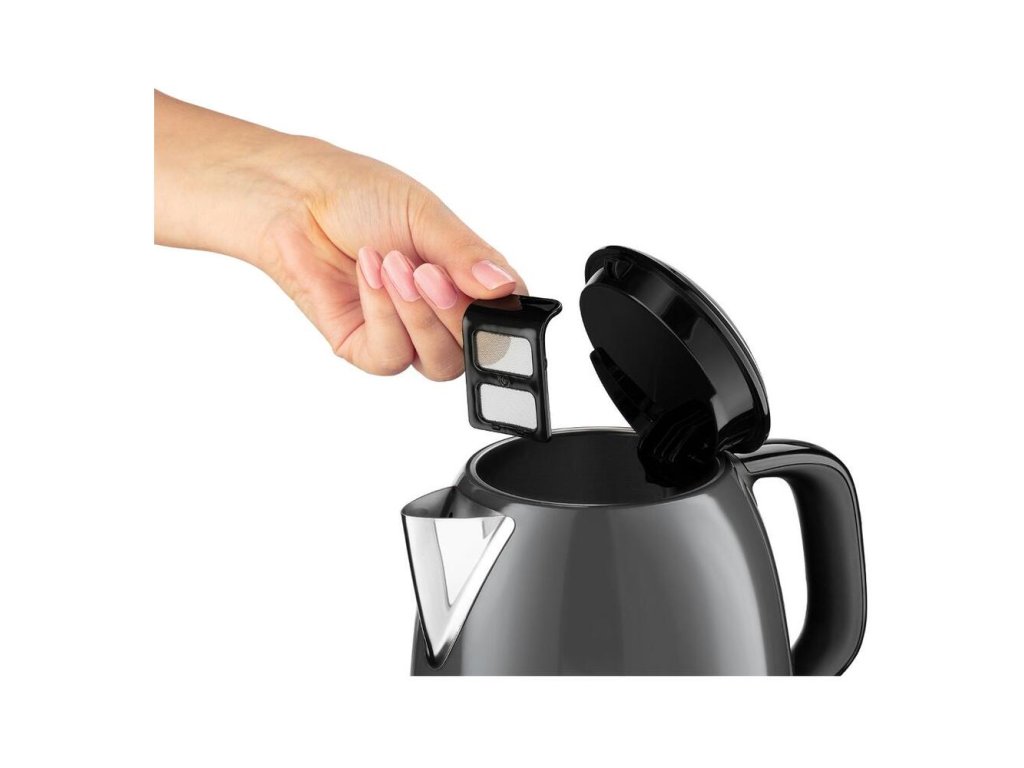 Mini kanvica s objemom 1 l z nerez ocele, podsvietený vypínač, uvarí vodu na 1 šálku za 50 sekúnd, odnímateľný umývateľný filter, ukazovateľ množstva vody, odklápacie veko z nerez ocele, 360 ° kruhová základňa, 2.4 kWDodatočné parametre