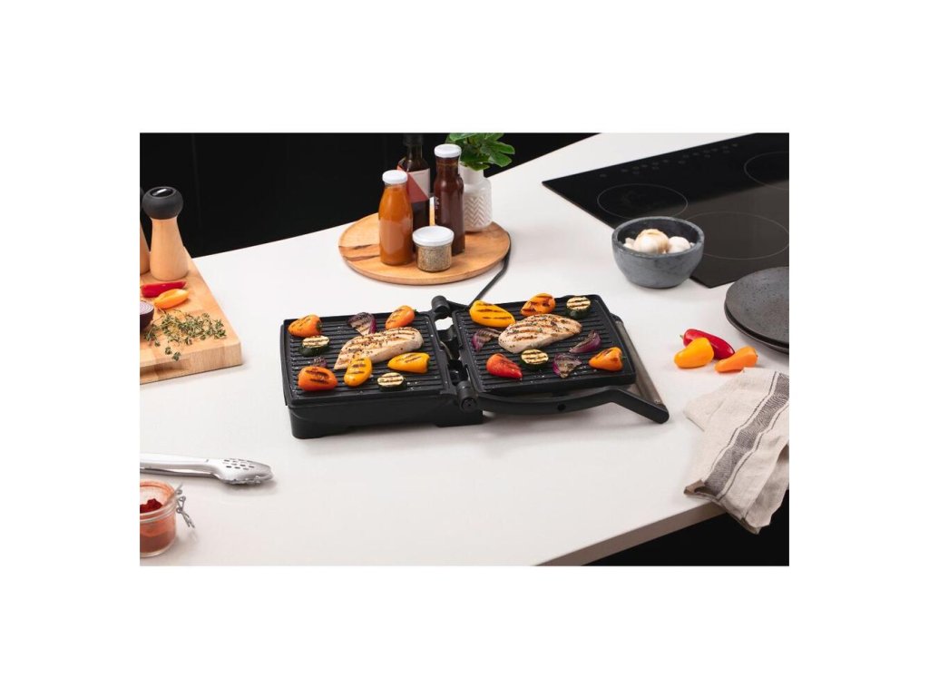 - Môžete ho použiť ako kontaktný gril alebo ako plochý otvorený gril.