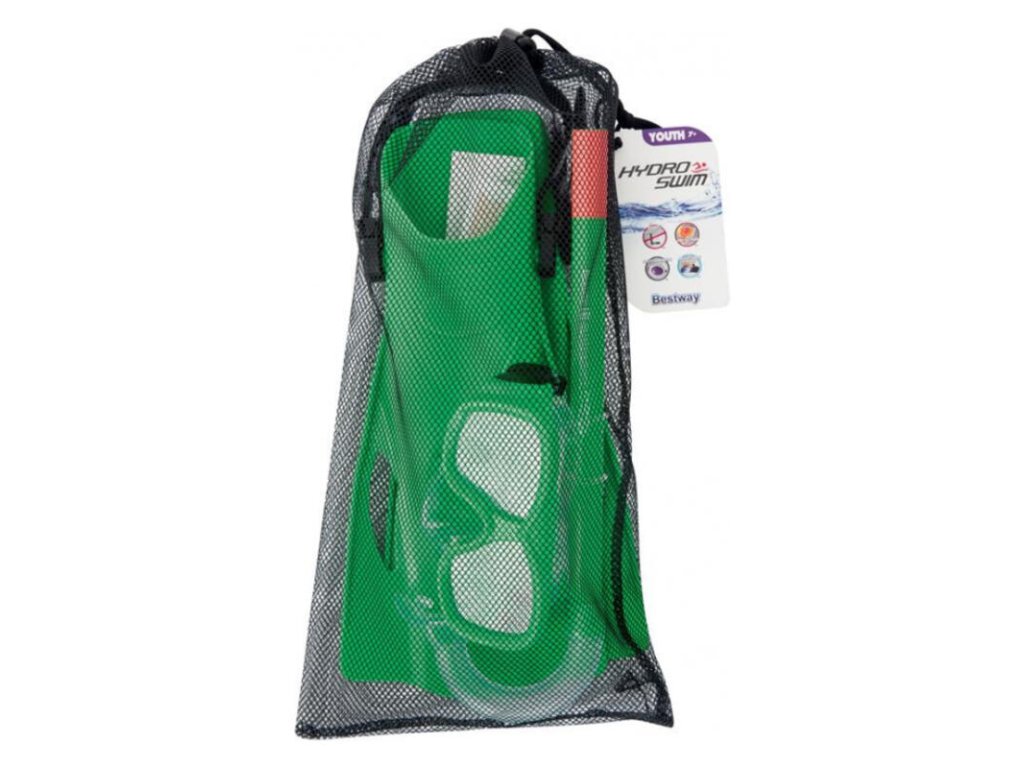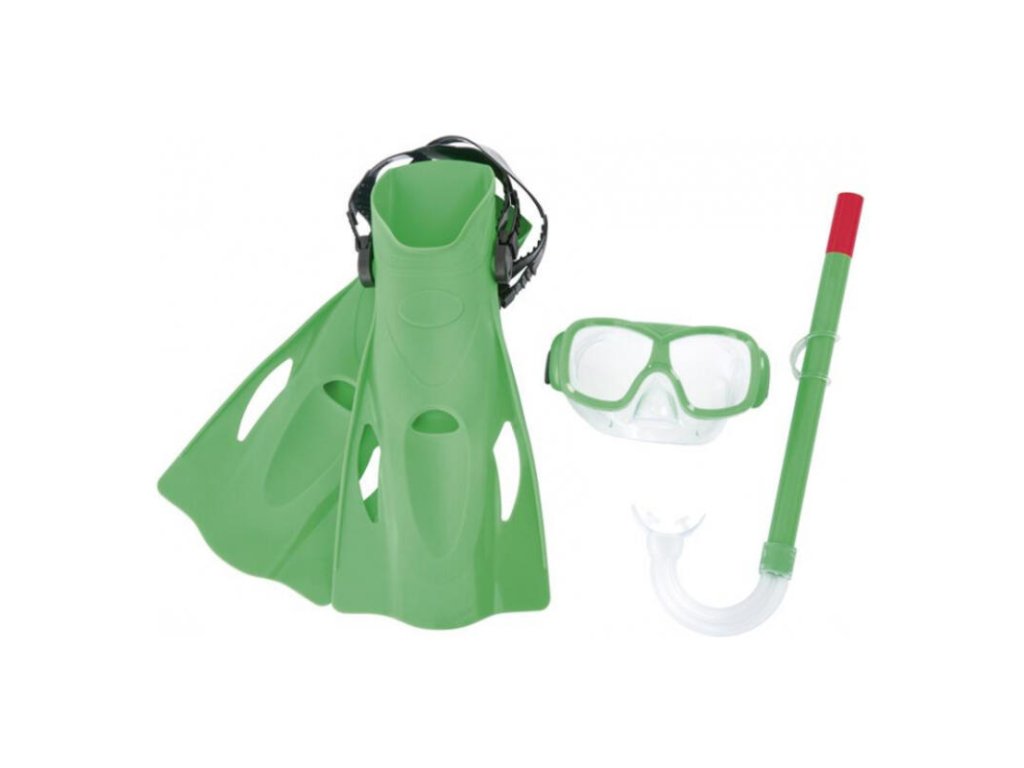 Šnorchlovacia sada Hydro-Swim Freestyle Snorkel od Bestway je dokonalým doplnkom pre zábavu detí pod vodou v bazéne alebo oceáne. Súprava je určená pre plavcov vo veku 7 a viac rokov. Pozostáva z okuliarov, šnorchla a 1 páru plutiev. Polykarbonátové šošovky okuliarov sa dodávajú s dvojitou lemovanou okrajovou obrubou pre presné priliehanie. Maska má plne nastaviteľný remienok na hlavu, takže zostane na svojom mieste pri ďalšom dobrodružstve pod vodou. Plutvy disponujú nastaviteľným popruhom na päte pre detské chodidlá každej dĺžky.