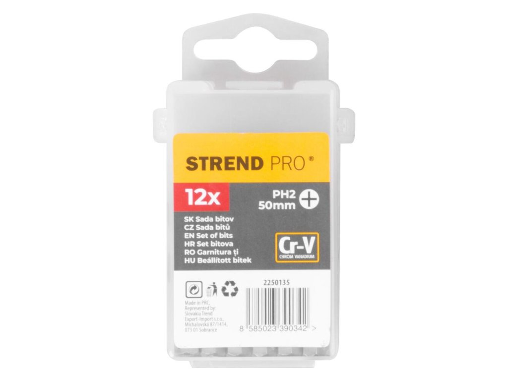 12 dielna sada bitov Strend Pro by nemala chýbať vo výbave vašej dielne. Je vyhotovená z chrómvanádu. Pozostáva z krížových bitov PH2 25 mm.