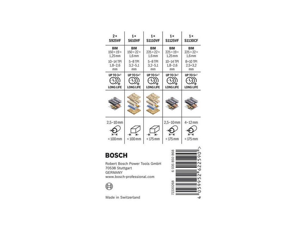 Dlhá životnosť pri demolačných prácach! Chvostové píly sú vynikajúce nástroje na búracie práce a táto sada PRO Demolition Set obsahuje vybrané chvostové píly Bosch PRO, s ktorými zvládnete náročné búracie práce. Sada obsahuje výber veľmi efektívnych listov do chvostovej píly PRO, ktoré umožňujú poriadne rezy do rôznych stavebných materiálov. Robustnosť pílovým listom dodáva ich bimetalové vyhotovenie v kombinácii s hrubým telom z HCS a kalenými zubami z HSS. Nech už musíte zdemolovať čokoľvek, táto sada vám s tým pomôže – každý pílový list v sade ponúka osvedčenú dlhú životnosť.