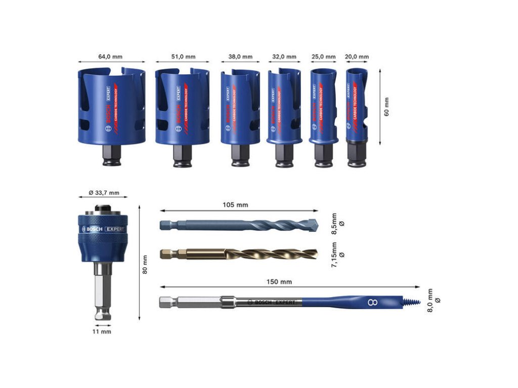 - Ponúka až 50× dlhšiu životnosť v tvrdých materiáloch než dierovka Bosch 2608594494