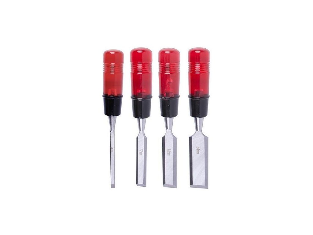 S touto sadou máte k dispozícii 4 dláta s rozmermi 6-12-18-24 mm.