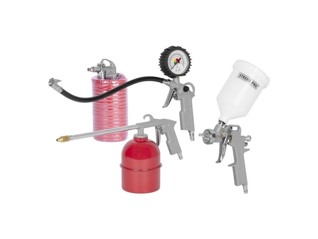 Kompletná 5 dielna sada na kompresor Airtool W-2005A1 pre dielne sa skladá z pištole s nanometrom, striekacej pištole, čistiacej pištole, ofukovacej pištole a hadice na kompresor. Sada ponúka široký rozsah použitia. Využijete ju napríklad na lakovanie, na striekanie kolies, na čistenie povrchu, alebo na fúkanie.