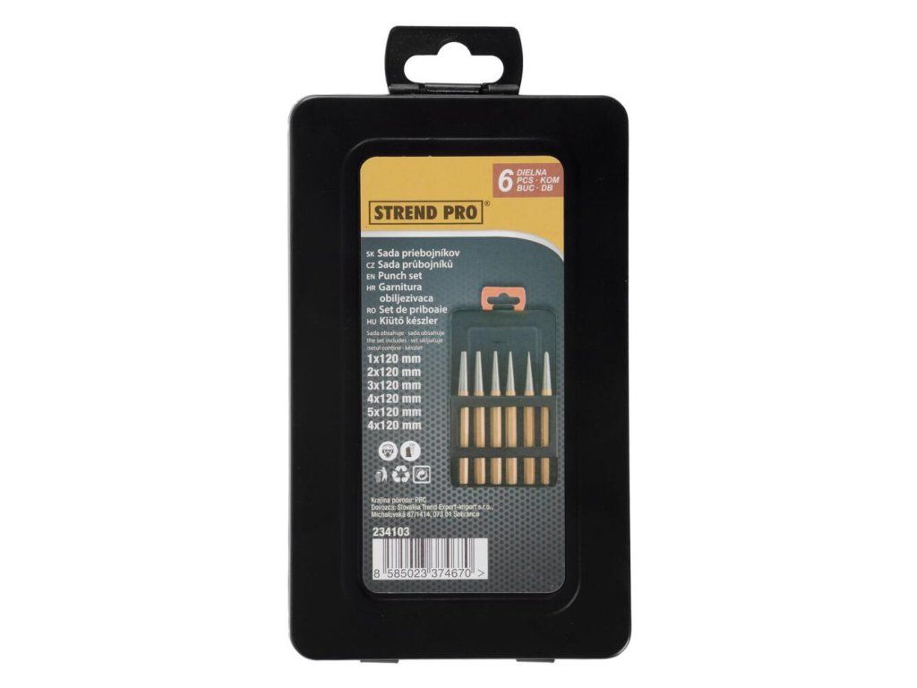 Sada priebojníkov pozostáva zo 6 nástrojov s rozmermi: 5x jamkovač 1x120, 2x120, 3x120, 4x120 mm1x dierovač 4x120 mm