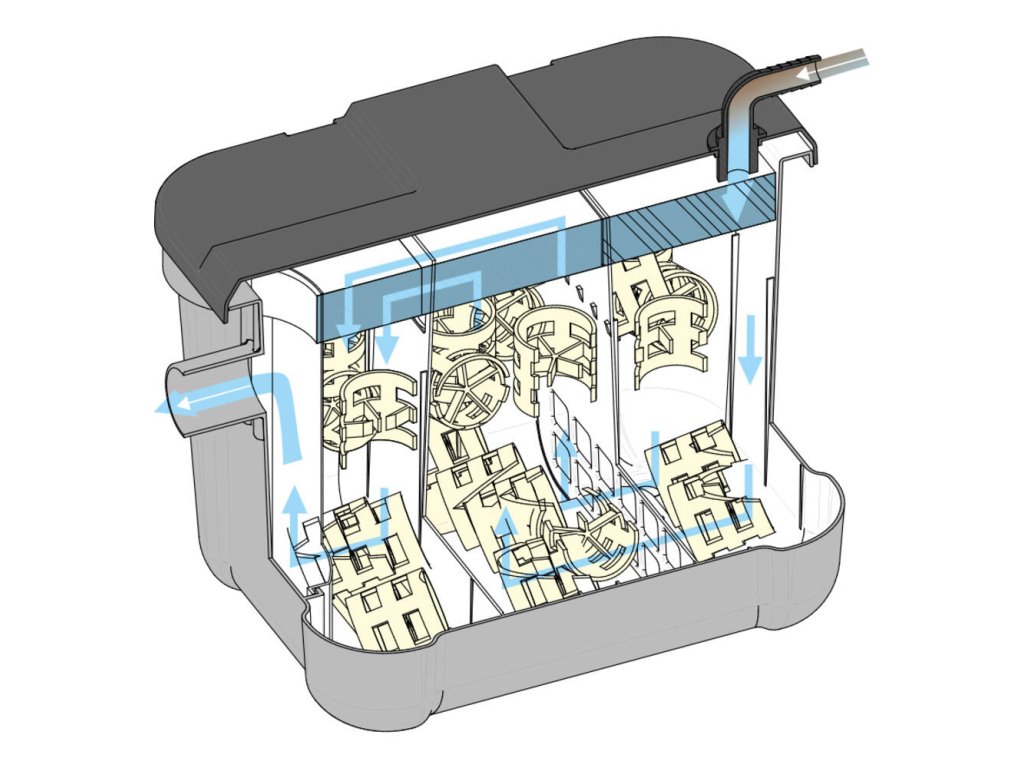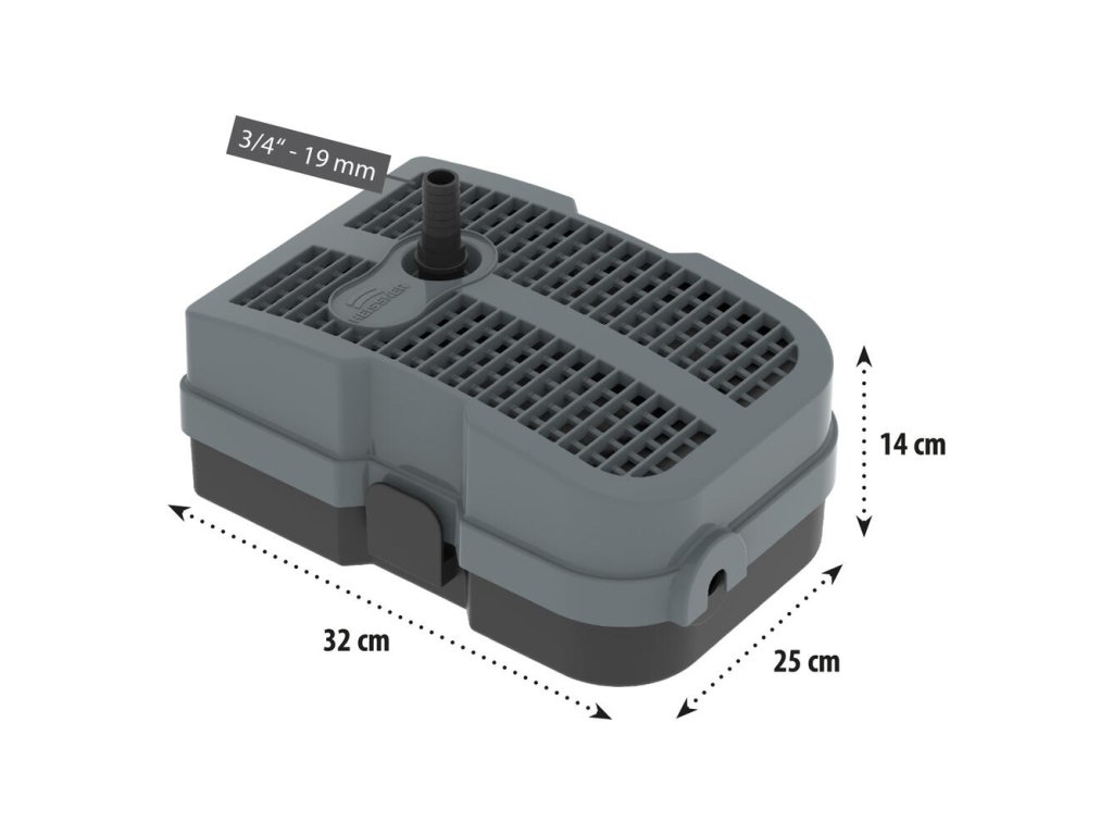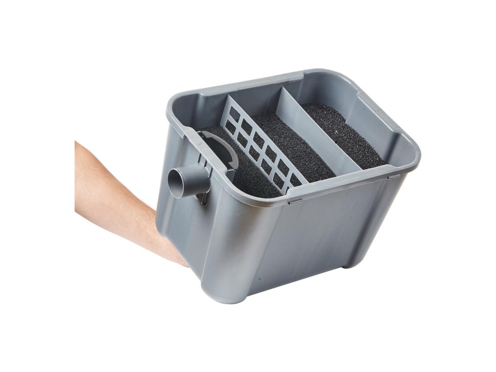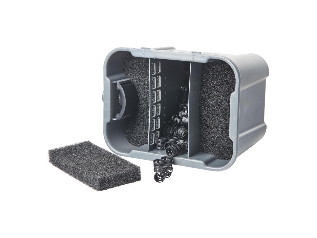 - Filtračný materiál: Láva granulát + sieťka, filtračné špongie