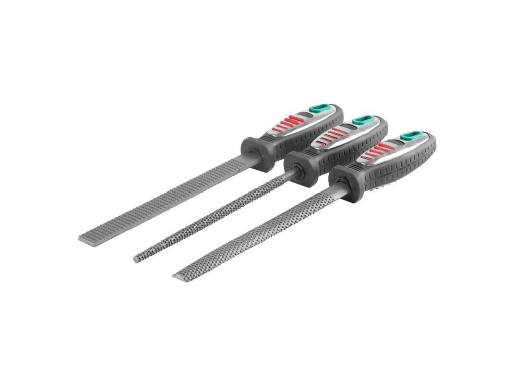 Sada rašplí Strend Pro by nemala chýbať vo vašej dielni. Sada pozostáva z 3 rašplí s dĺžkou 200 mm. Rukoväť rašplí zabezpečuje pohodlné uchopenie s možnosťou zavesenia. 1x úsečový1x kruhový