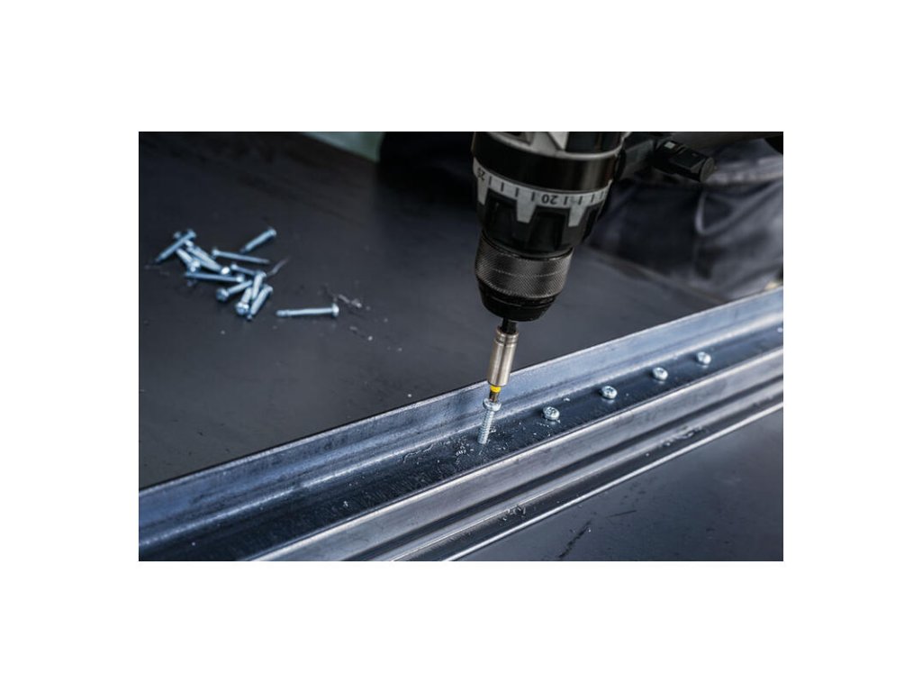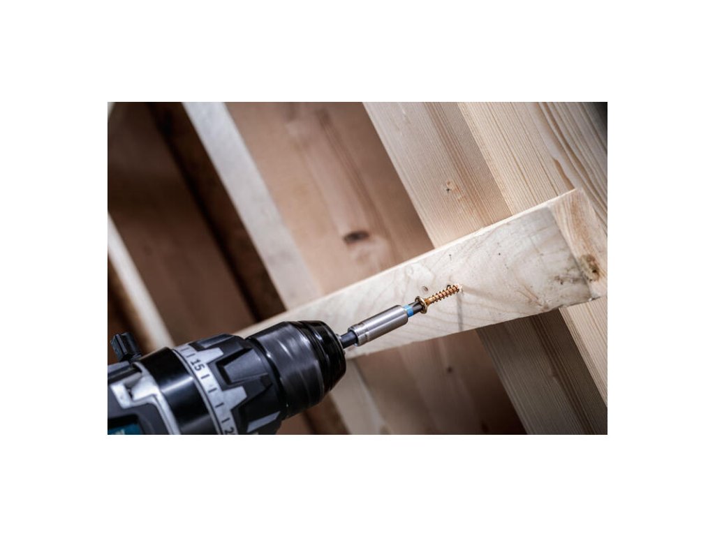 - Farebne odlíšené skrutkovacie bity sú vyrobené z tepelne upravenej ocele S2 a vyznačujú sa tvrdosťou a odolnosťou voči opotrebovaniu