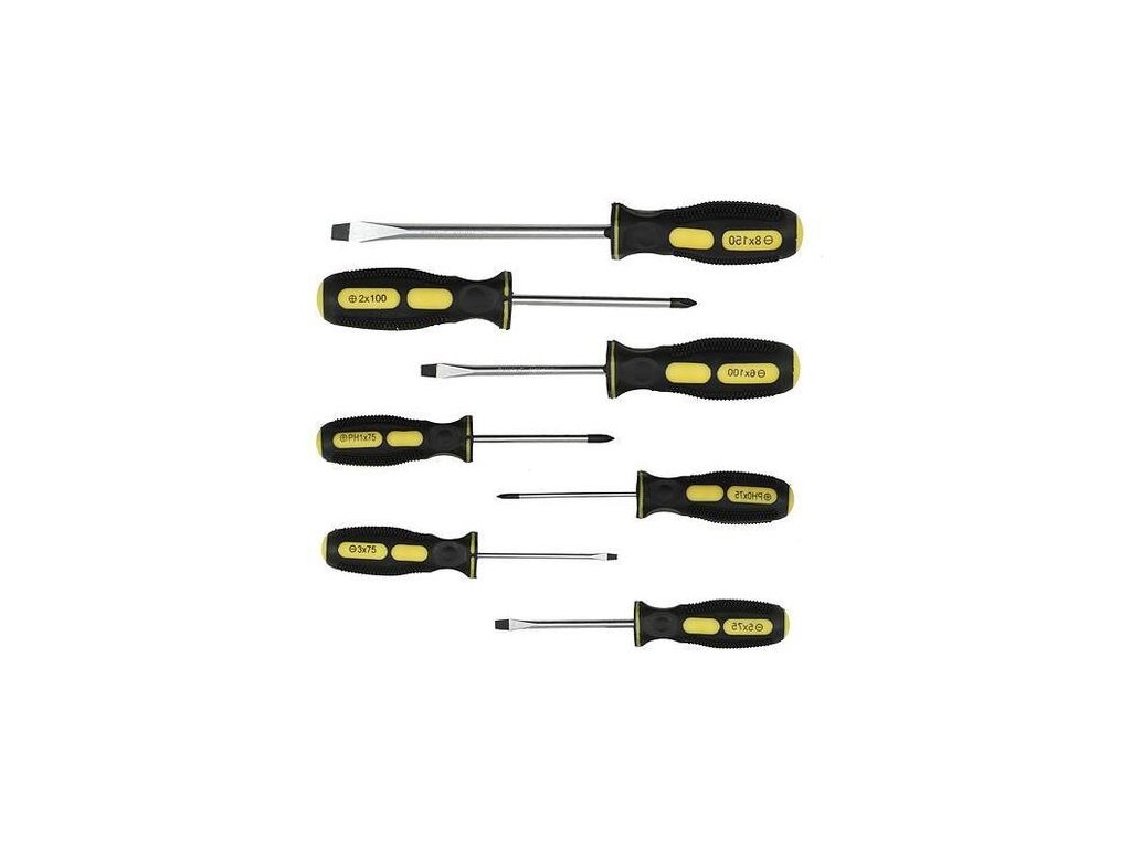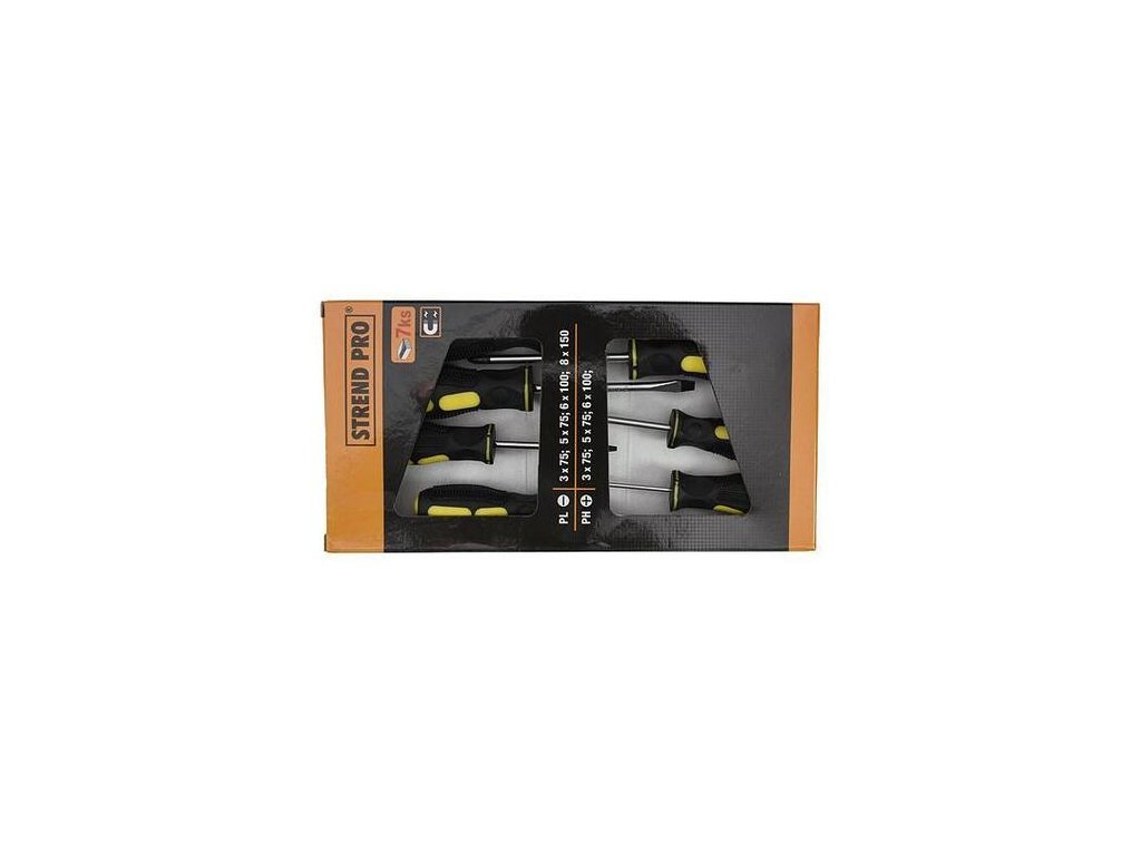 Sada skrutkovačov Strend Pro by nemala chýbať vo vašej dielni. Pozostáva zo 7 skrutkovačov. PL 3x75; 5x75; 6x100;8x150mmPH 3x75; 5x75; 6x100mm