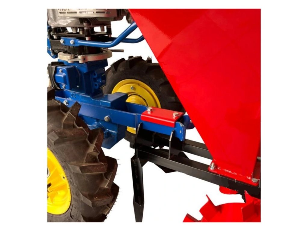 Sadzač zemiakov SZT-1 V na uľahčenie sadenia zemiakov pred malotraktorom AGZAT