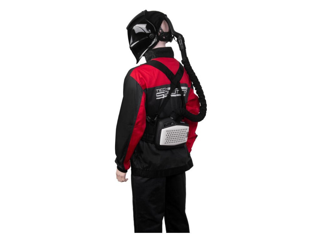 Filtračná jednotka čistí nasávaný vzduch z okolia od prachu a pevných častíc a očistený ho privádza priamo z hora do priestoru zváračovej tváre.
