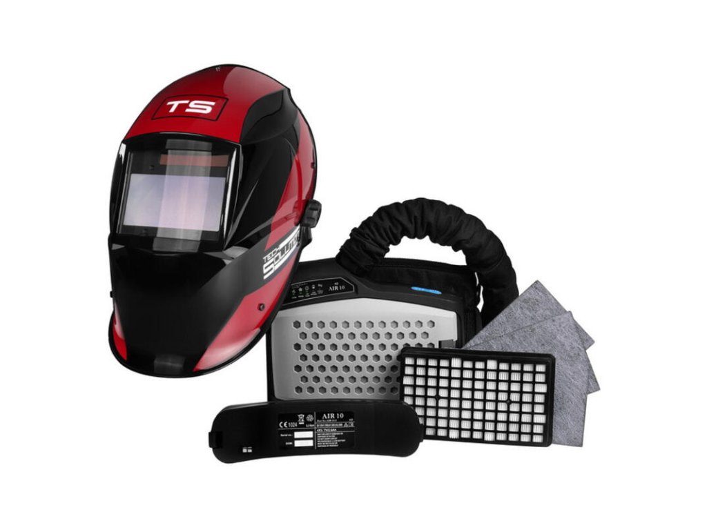 Zváracia kukla SOLUTION TS-718 s odsávaním a logom TECH SOLUTION v sebe kombinuje zváraciu masku so samostmievacou jednotkou DIN 5 až DIN 13 na ochranu oči a tváre pred nebezpečným žiarením zo zváracieho oblúka a filtračnou jednotkou na ochranu dýchacích ciest zvárača.