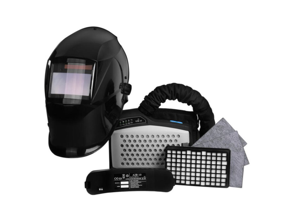 - Filtračná jednotka čistí nasávaný vzduch z okolia od prachu a pevných častíc a očistený ho privádza priamo z hora do priestoru zváračovej tváre.