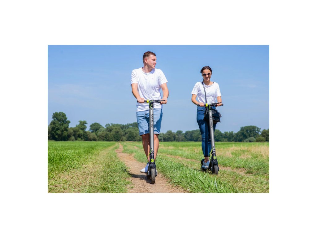 Odrazte sa a jazdite. Elektrická kolobežka Concept SC2500 Crossader je výborný dopravný prostriedok, ktorý vás s minimálnou námahou dostane takmer kdekoľvek. Je osadená bezkartáčovým motorom s výkonom 350 W, s ktorým dosiahnete rýchlosť až 25 km/h. Môžete si tak dopriať skutočne svižnú jazdu, ktorá je vďaka elektrickému pohonu šetrná k životnému prostrediu, a naviac vás takmer nič nestojí. Využíva systém rekuperácie, vďaka ktorému zbiera energiu z brzdenia a vráti ju späť do batérie, čím predlžuje jej výdrž.
