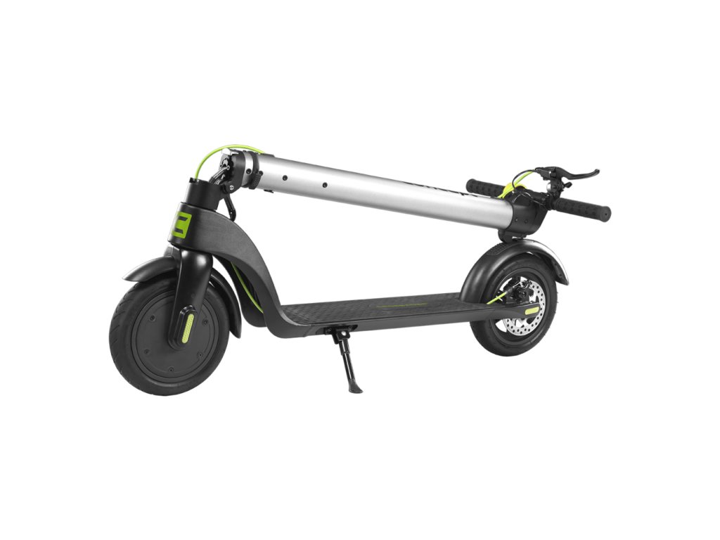 Kolobežka je vybavená dvojitým brzdným systémom: hlavnou kotúčovou brzdou a zadnou blatníkovou, ktorú si ľahko pribrzdíte ľahkým zošliapnutím. Samozrejmosťou je tiež LED osvetlenie umiestnené na konštrukcii riadidiel a na zadnom blatníku. Predné svetlo bielej farby je nutné aktivovať pred každou jazdou, zadné červené sa rozsvieti automaticky počas brzdenia. Nechýbajú ani reflexné prvky umiestnené po celom tele kolobežky, ktoré zvyšujú bezpečnosť na komunikácií pri zhoršenej viditeľnosti. V základnej výbave kolobežky nechýba ani zvonček a stojan, takže ju nemusíte nikdy pokladať a predídete tak jej poškrabaniu.