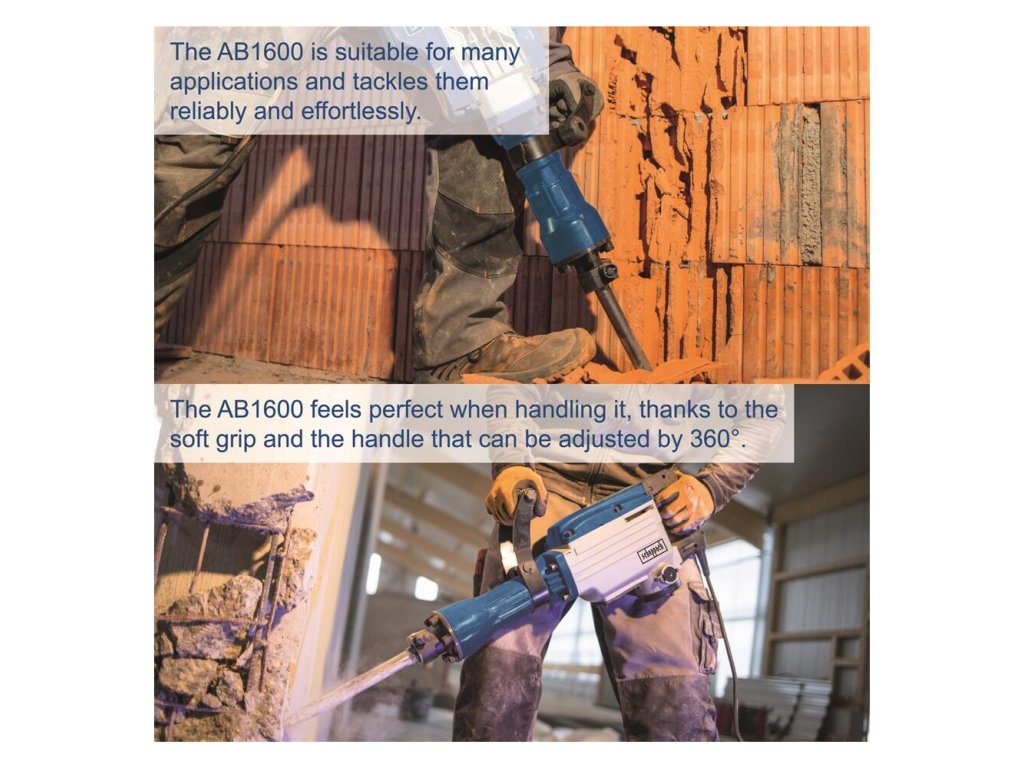 Výkonné búracie kladivo Scheppach AB 1600 je určené predovšetkým na demolačné a búracie práce v súkromnom sektore alebo na krátkodobé použitie v profesionálnom stavebníctve.Štíhly tvar tela stroja mu umožňuje pracovať aj v stiesnených podmienkach.