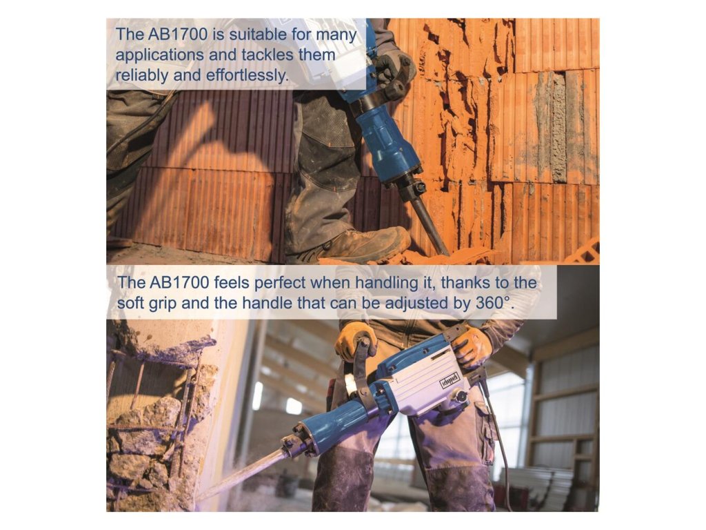Demolačné kladivo Scheppach AB 1700 patrí do novej generácie strojov, ktoré sa vyznačujú vysokým výkonom, dlhou životnosťou, jednoduchou a robustnou konštrukciou a vynikajúcou cenou.