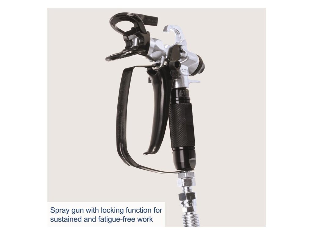 Striekacia hadica je zakončená ľahkou striekacou pištoľou s veľkým 4-prstovým spínačom, ktorý výrazne znižuje únavu rúk pri dlhodobej práci.