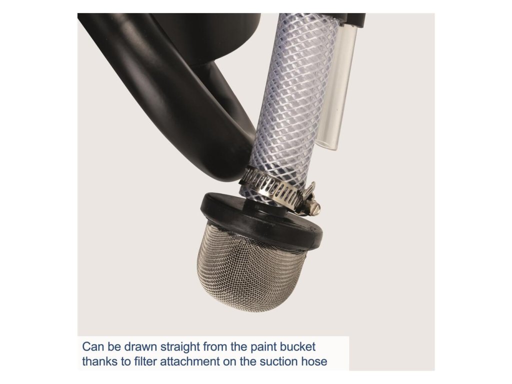 Stroj má vlastnú saciu hadicu, takže farbu môžete nasávať z vedra alebo priamo z nádoby, v ktorej ste ju kúpili.