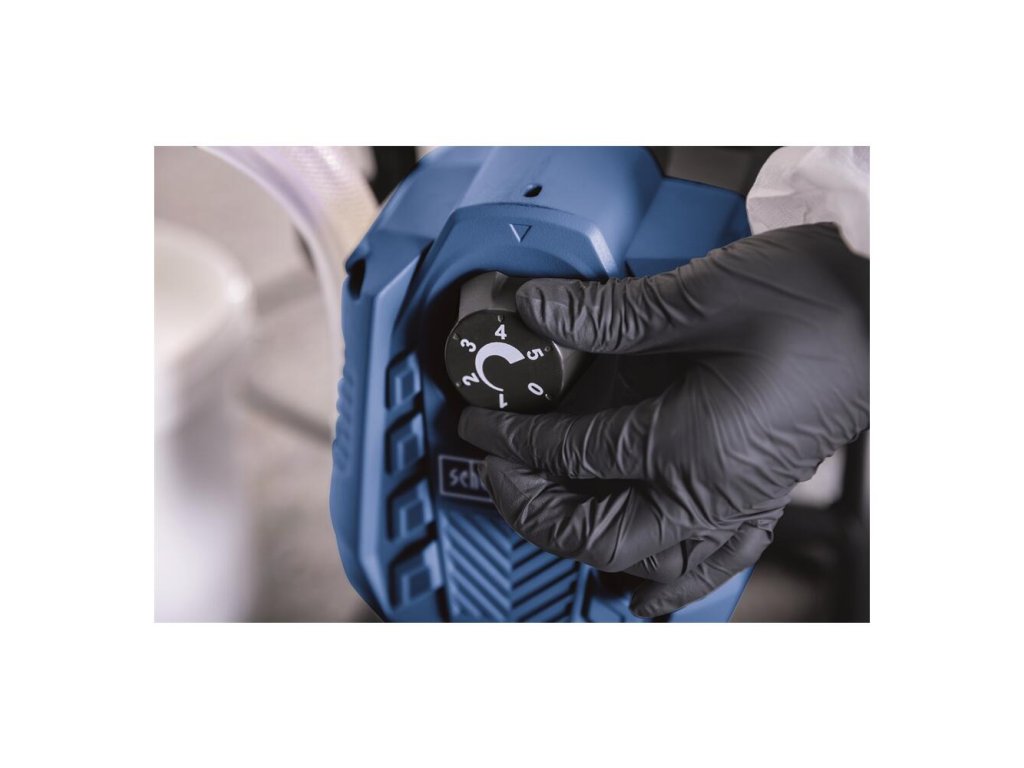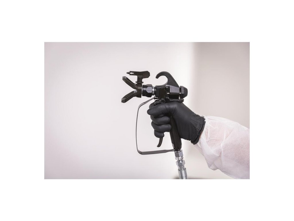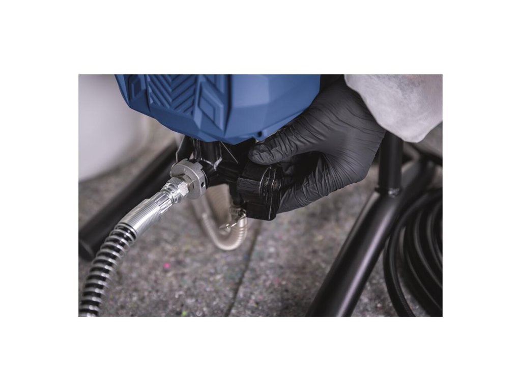 Výkonný motor s medeným vinutím je uložený v pevnom ráme, ktorý má integrovaný úložný priestor na trysky, a vďaka prietoku až 1,25 l/min môže pracovať rýchlosťou až 420 m2 za hodinu, čo je až 4-krát rýchlejšie ako ručné lakovanie.