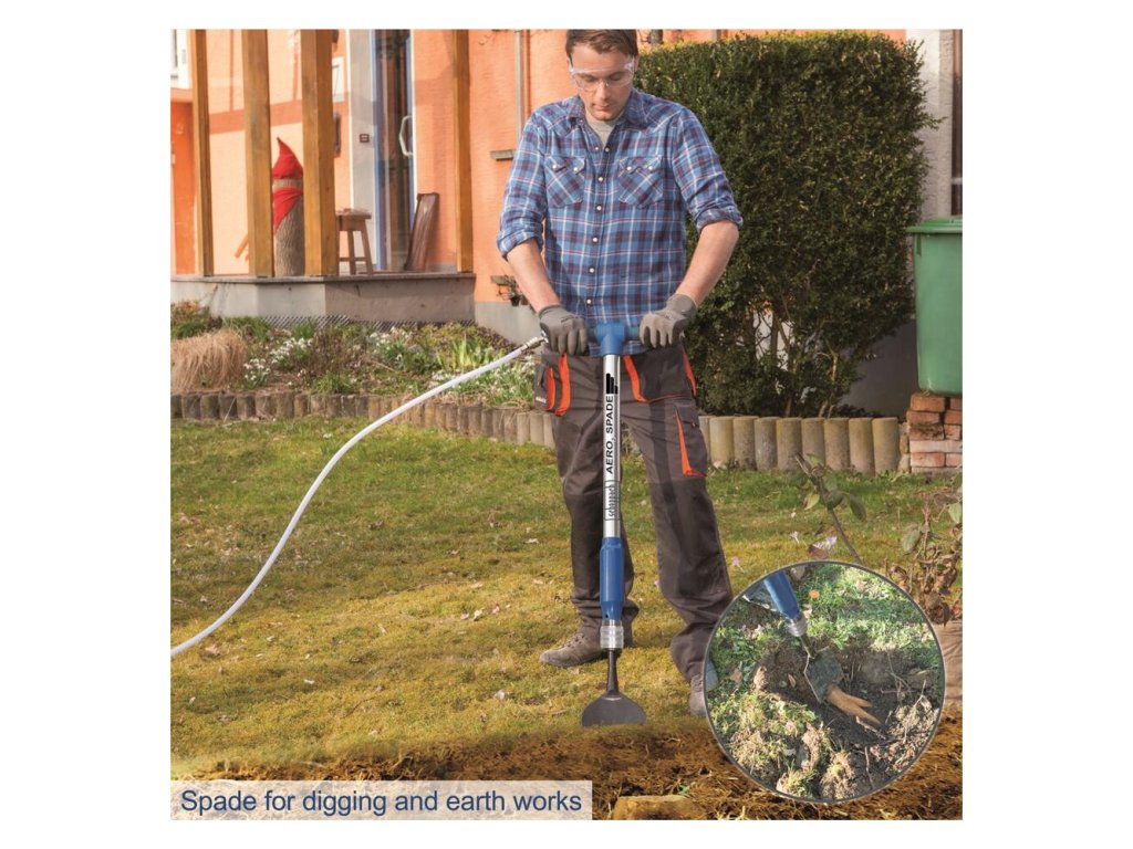 S multifunkčným pneumatickým náradím Aero2 Spade od spoločnosti Scheppach sa mnohé náročné úlohy stávajú výrazne jednoduchšími.
