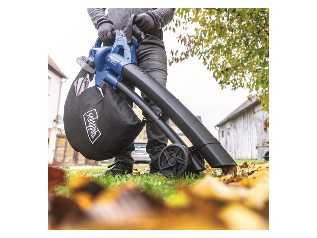 Výkonný akumulátorový záhradný vysávač a fúkač Scheppach BC-BLV720-X ponúka štyri funkcie v jednom zariadení - vysávanie, fúkanie, drvenie a vreckovanie.