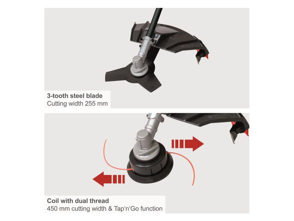 S možnosťou výberu veľkej reznej hlavy alebo ostrého trojzubého noža ľahko pokosíte vysokú trávu na lúke alebo zlikvidujete drobný porast v lese či sade.