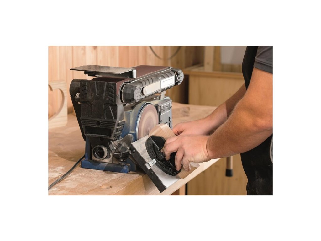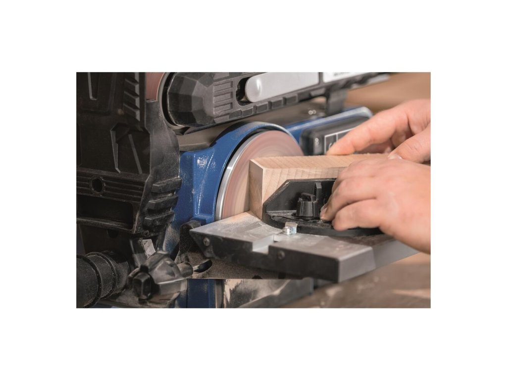 Dôležité je, že kotúčová brúska nepresahuje okraj brúsneho pásu, takže na páse môžete brúsiť aj veľké obrobky.