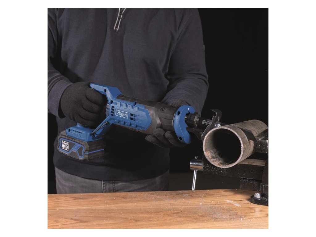 Scheppach C-RS100-X je ľahká a kompaktná akumulátorová chvostová píla, ktorá je ideálna na jednoduché a efektívne rezanie dreva, plastov, neželezných kovov a stavebných materiálov (s použitím vhodného pílového listu).
